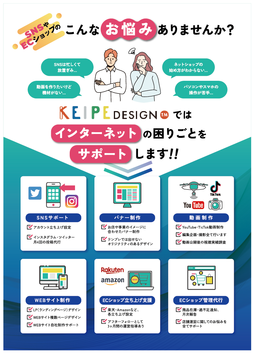 | Instagramでの投稿バー作成から投稿代行、You Tube制作まで、SNSを使った販促企画を幅広くサポートしています。 |