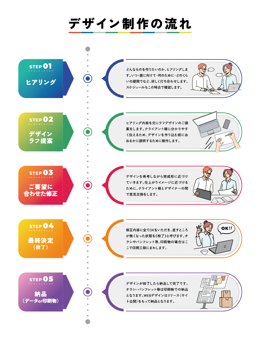 私たちは、デザインワークを通じて広く社会とかかわりを持ち、地域で活動する企業・各種団体のお手伝いをしたいと考えています。総合的な販促企画、WEBサイトや商品パッケージのデザイン、またはSNS戦略など、ニーズに合ったクリエイティブなアプローチをご提案することができます。